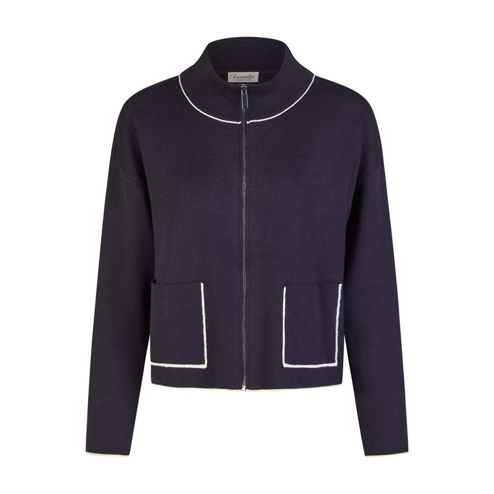 Barbara Lebek Navy Contrast Edge Zip Up Cardigan